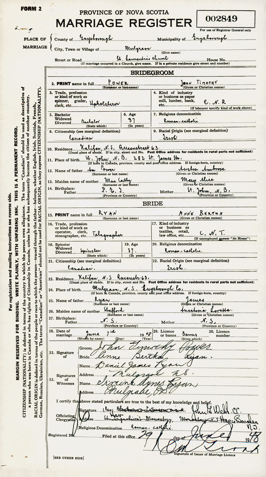 Registration: Year: 1948 number: 002849