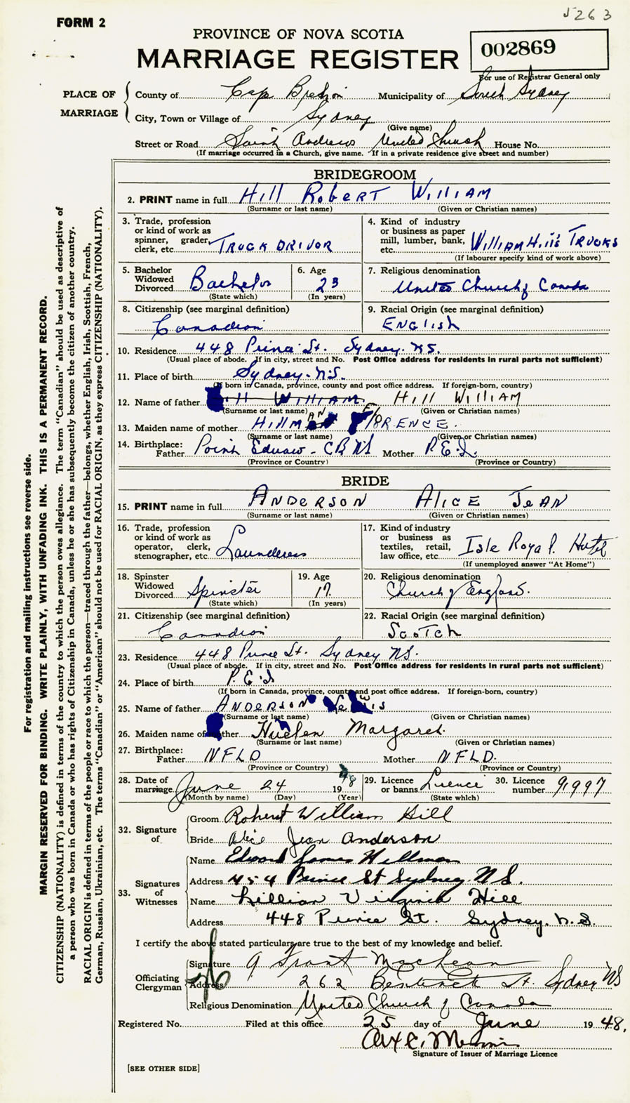 Registration: Year: 1948 number: 002869