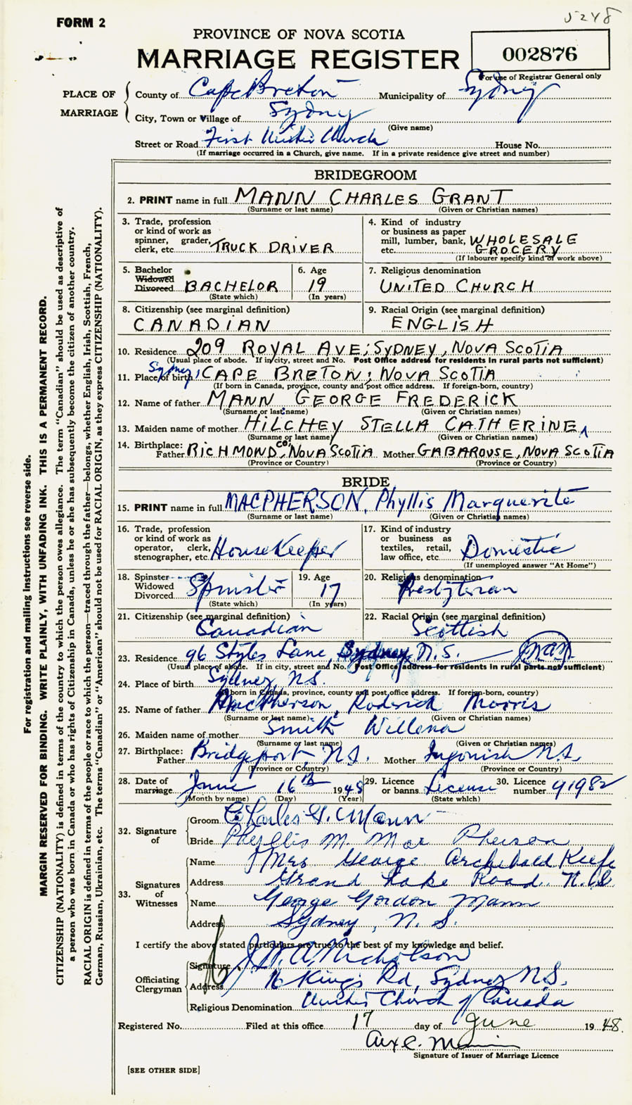 Registration: Year: 1948 number: 002876