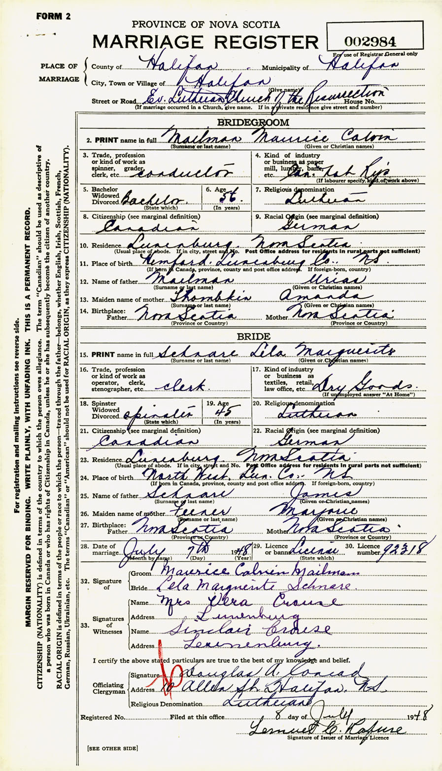Registration: Year: 1948 number: 002984