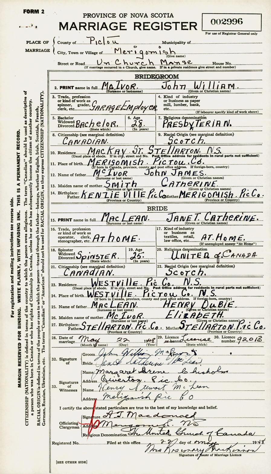 Registration: Year: 1948 number: 002996