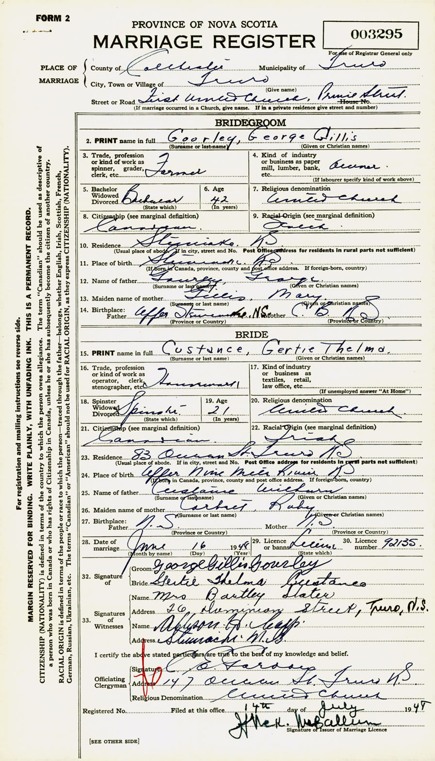 Registration: Year: 1948 number: 003295