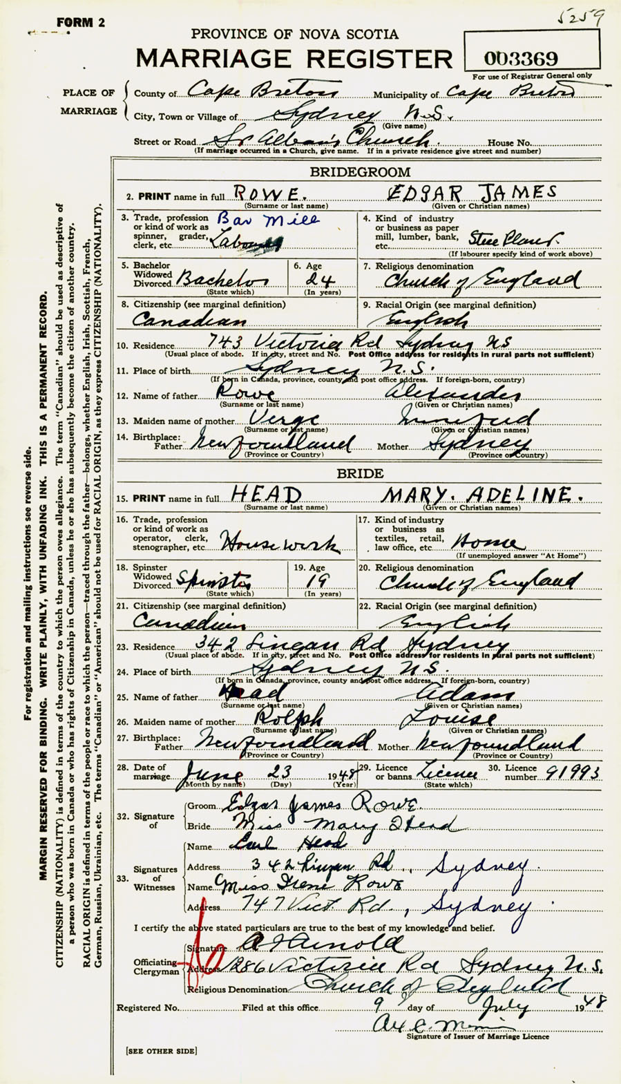 Registration: Year: 1948 number: 003369