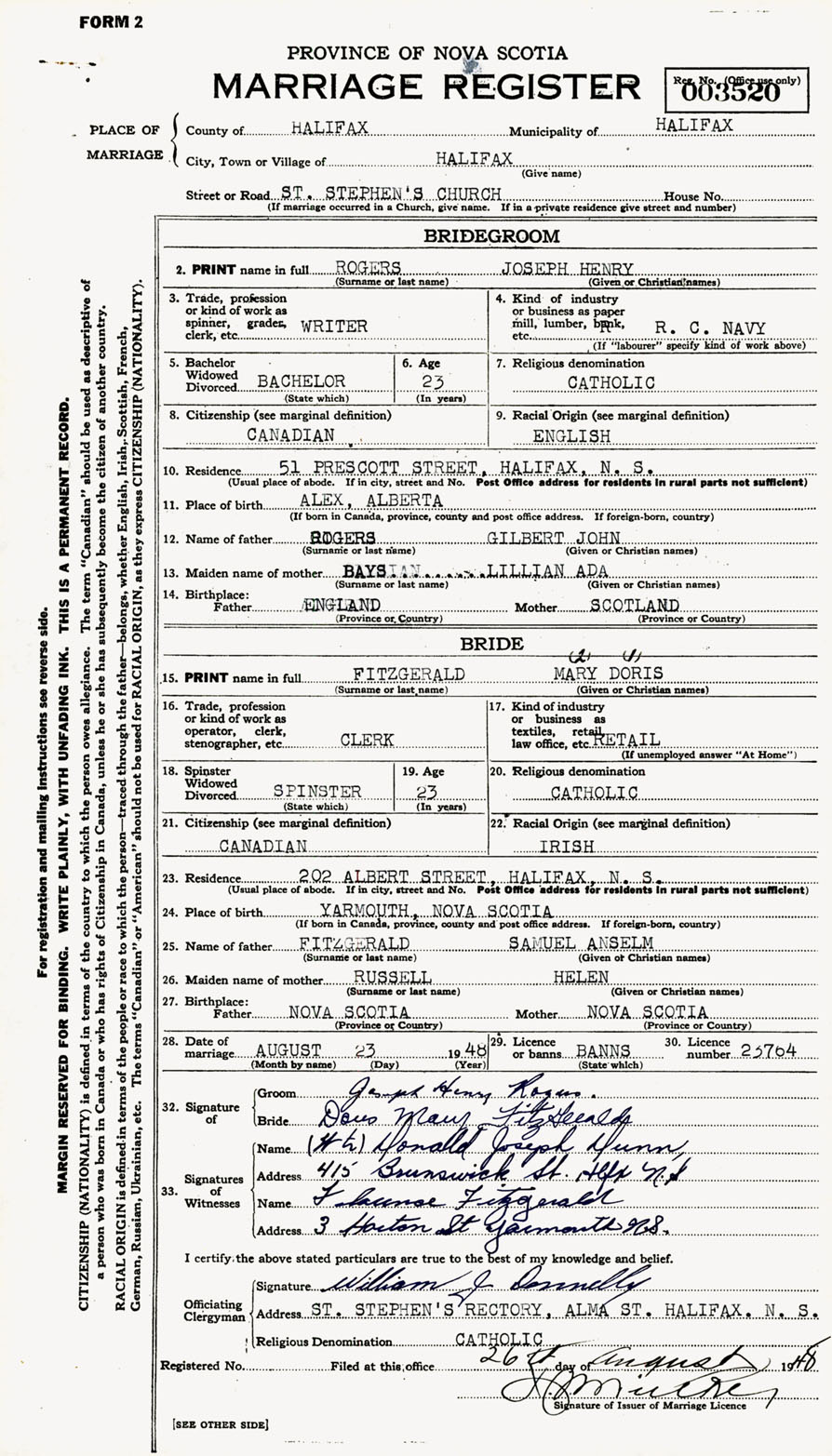Registration: Year: 1948 number: 003520