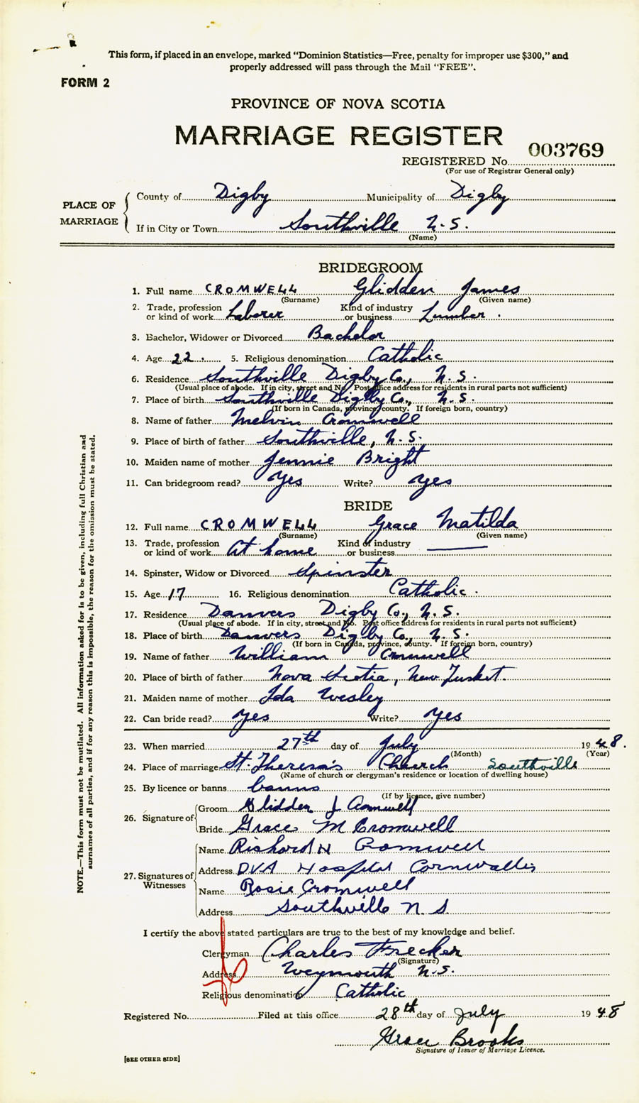 Registration: Year: 1948 number: 003769