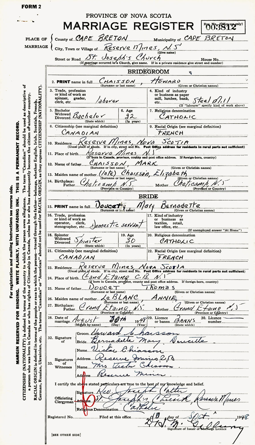 Registration: Year: 1948 number: 003812