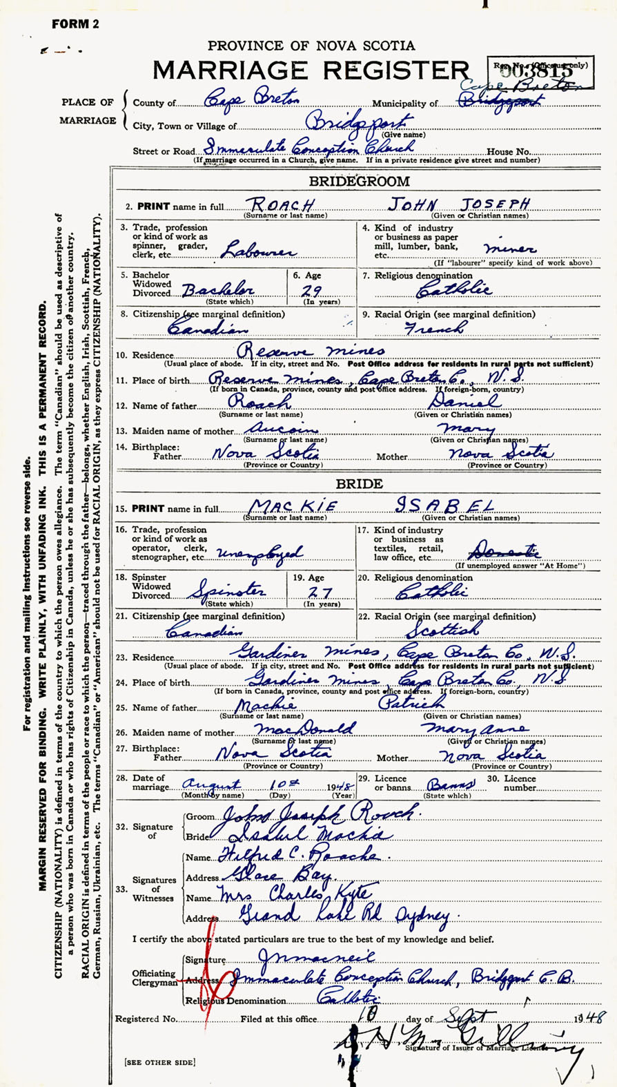 Registration: Year: 1948 number: 003815