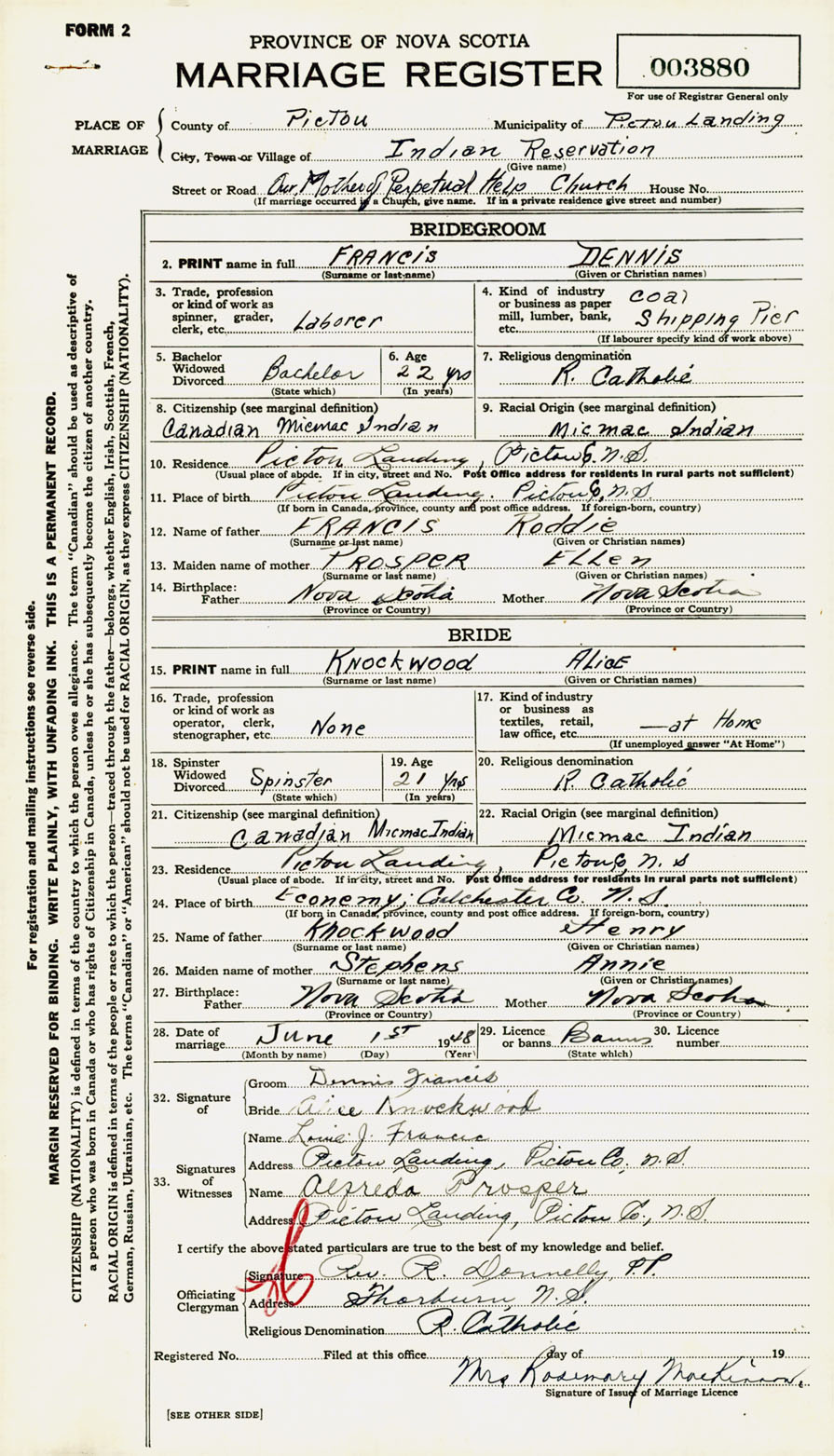 Registration: Year: 1948 number: 003880