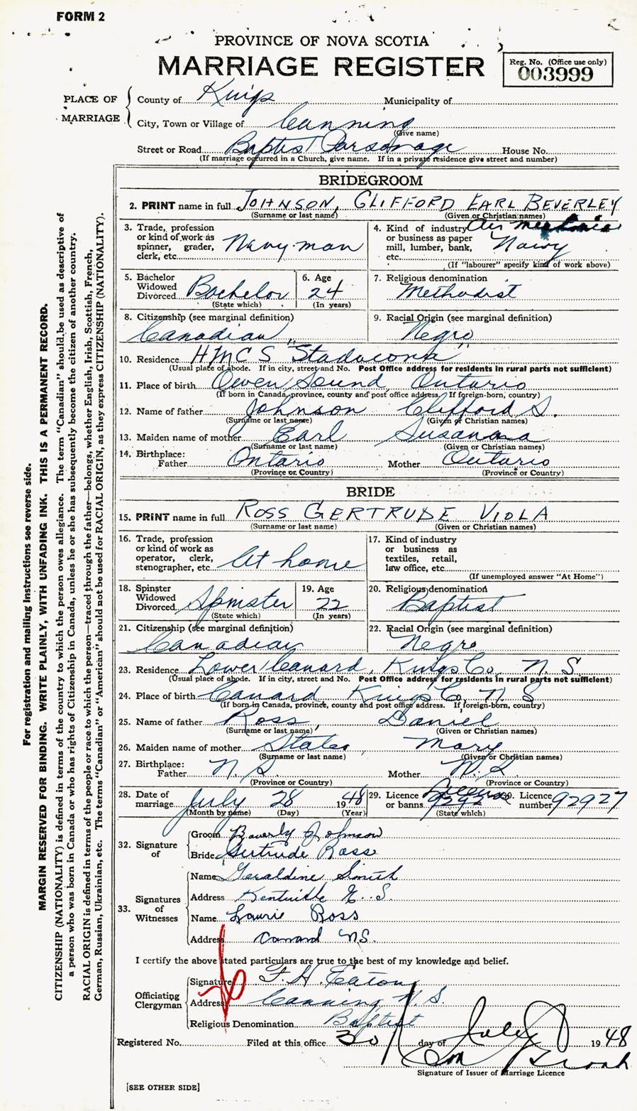 Registration: Year: 1948 number: 003999