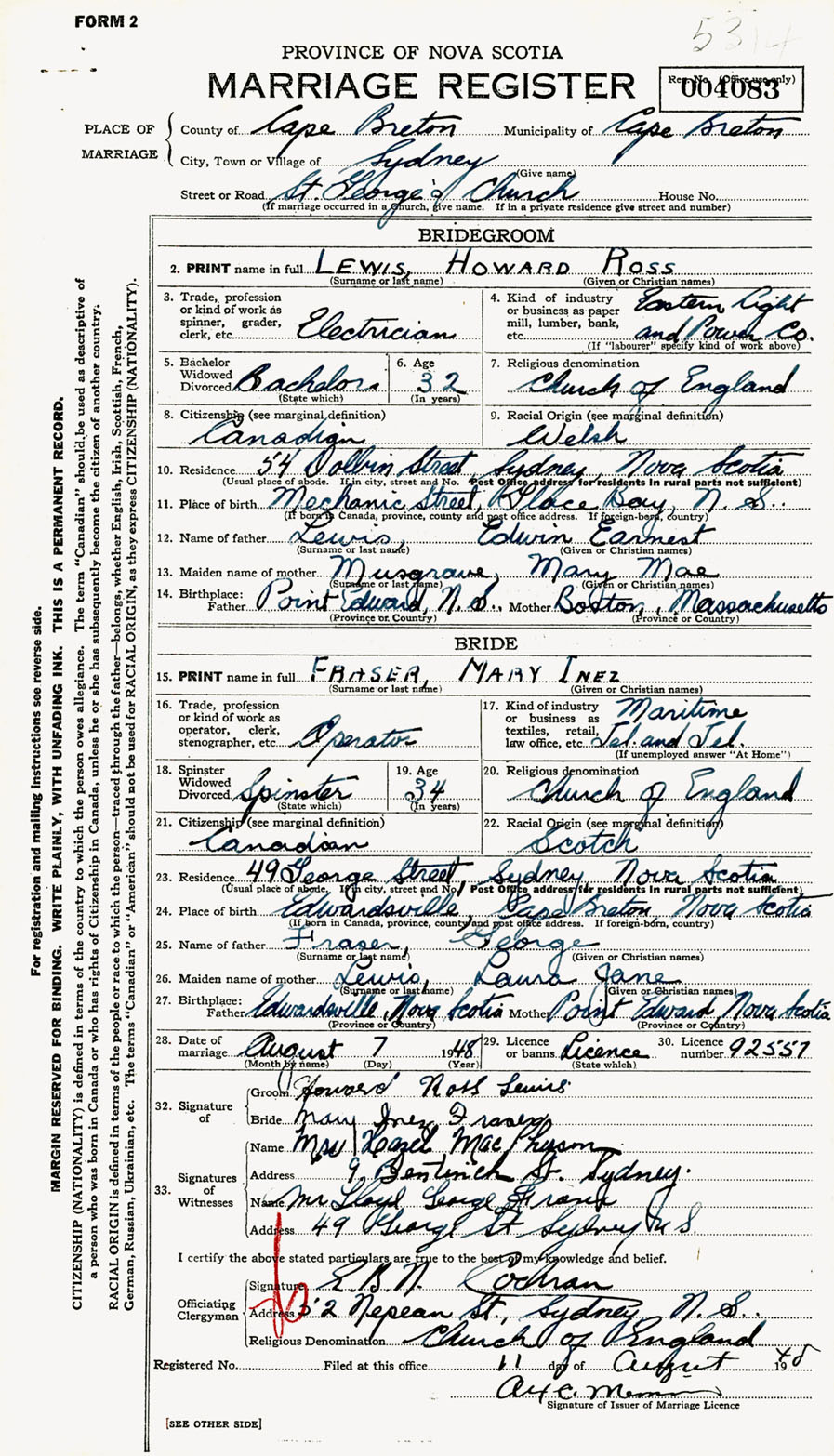 Registration: Year: 1948 number: 004083