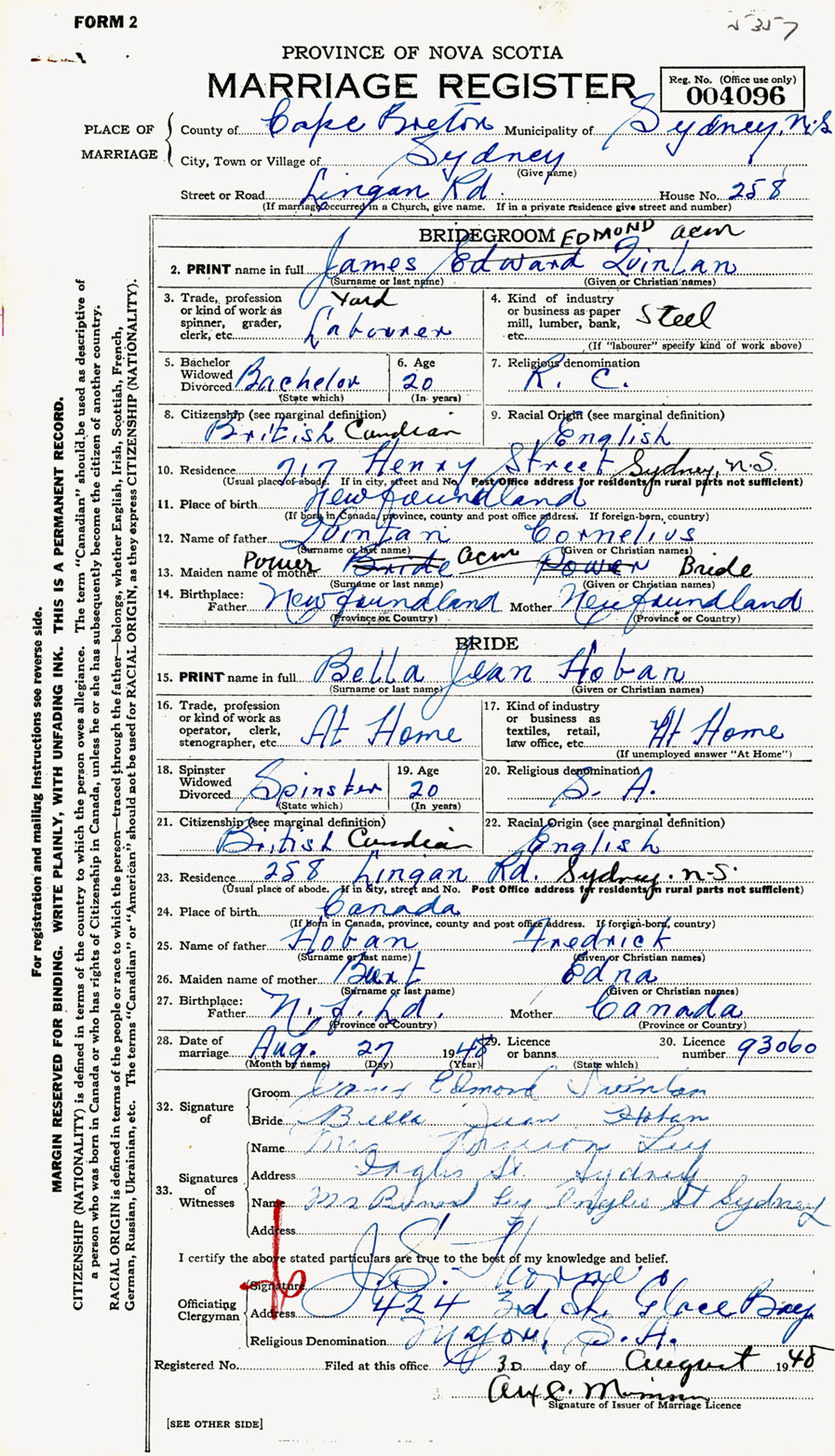 Registration: Year: 1948 number: 004096