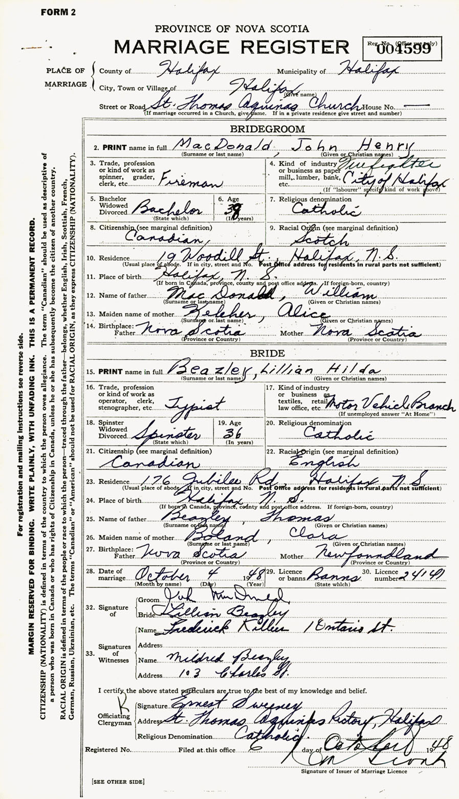 Registration: Year: 1948 number: 004599