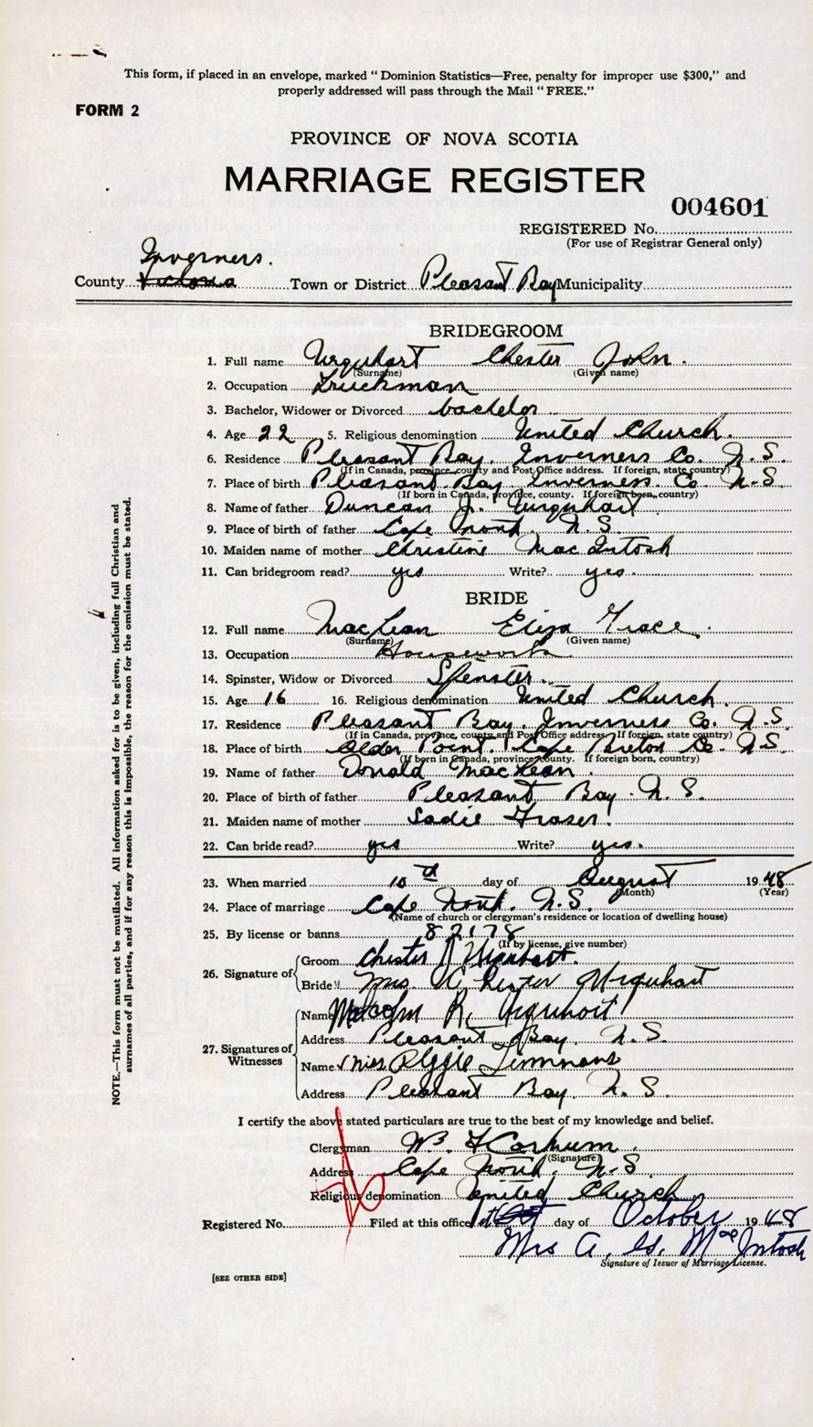 Registration: Year: 1948 number: 004601