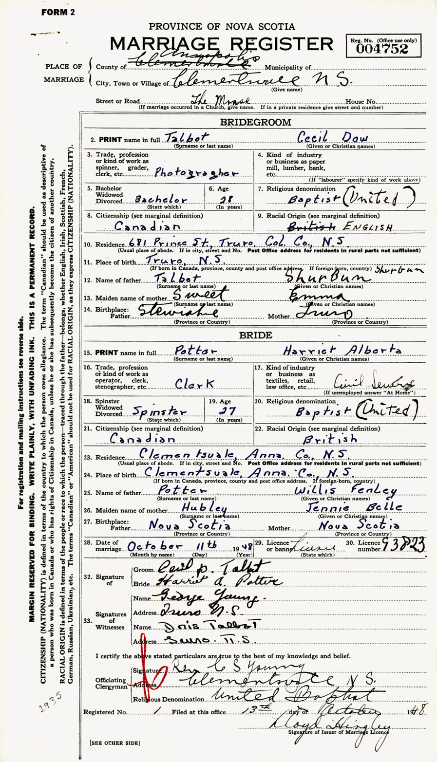 Registration: Year: 1948 number: 004752