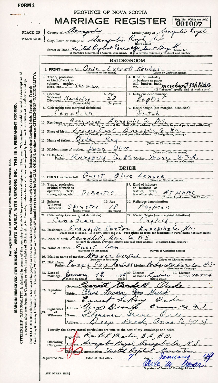 Registration: Year: 1949 number: 001007