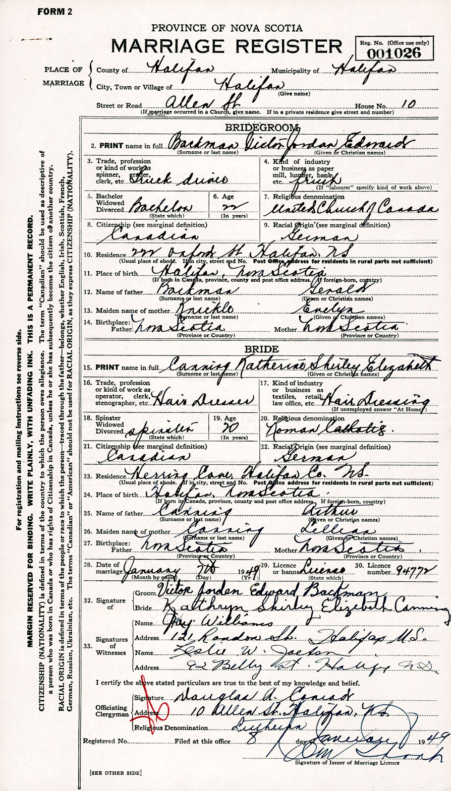 Registration: Year: 1949 number: 001026