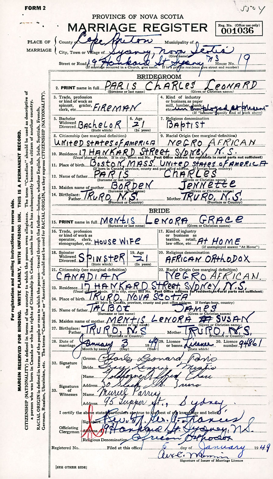 Registration: Year: 1949 number: 001036