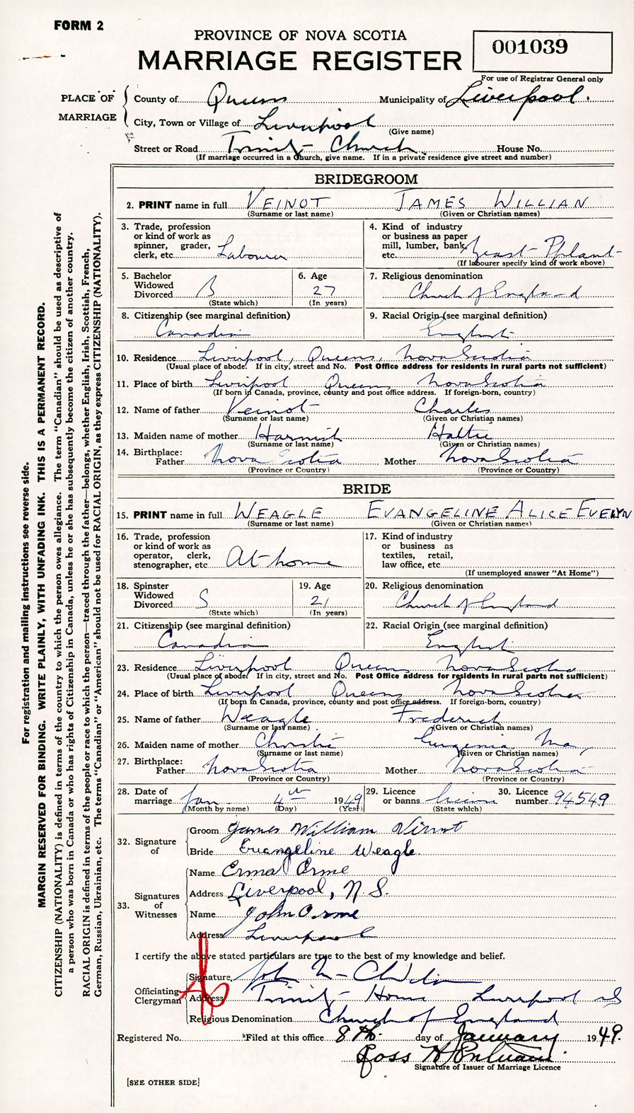 Registration: Year: 1949 number: 001039
