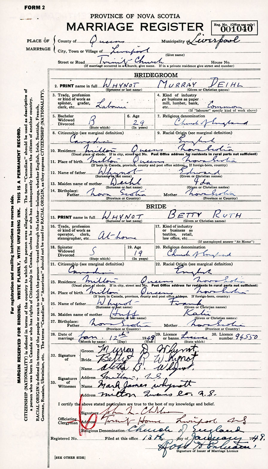 Registration: Year: 1949 number: 001040