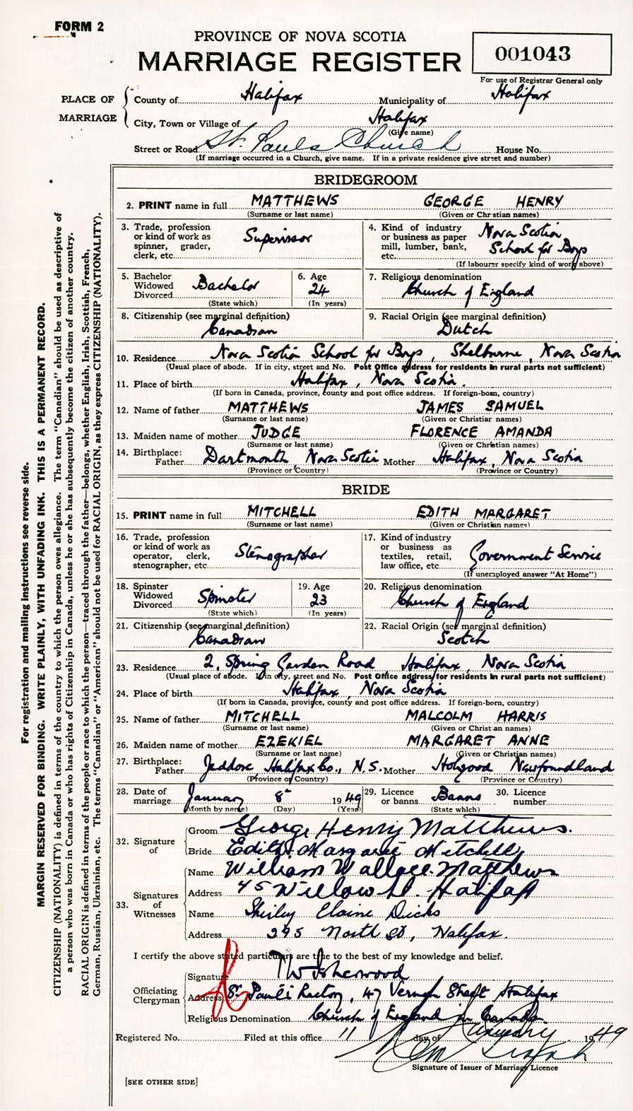 Registration: Year: 1949 number: 001043