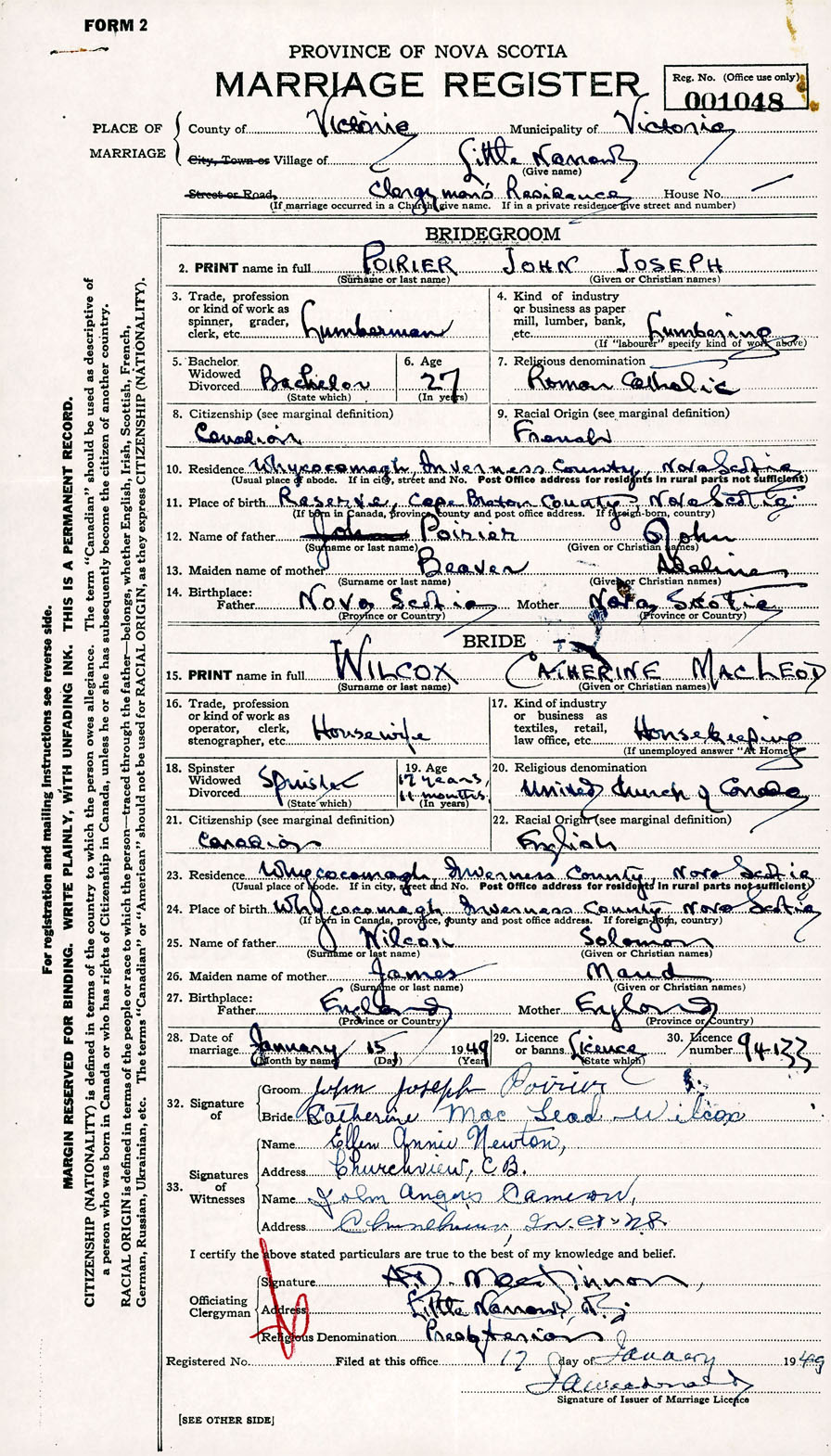 Registration: Year: 1949 number: 001048