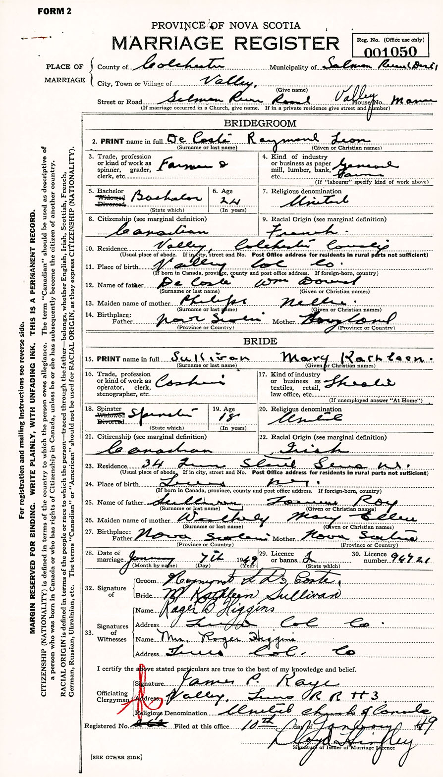 Registration: Year: 1949 number: 001050