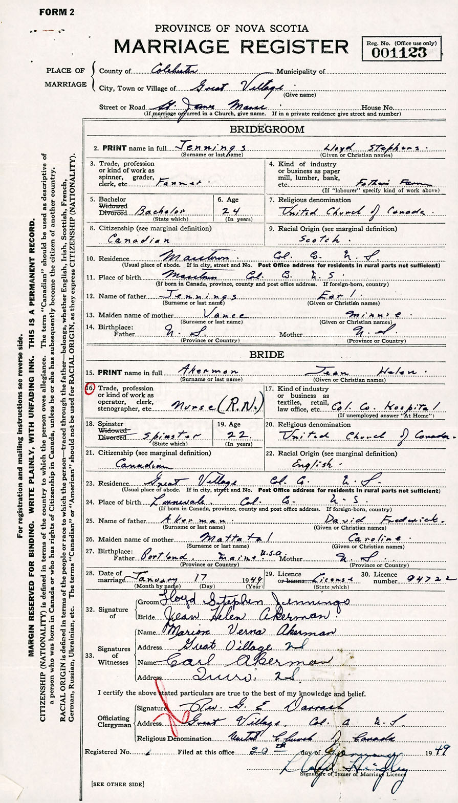 Registration: Year: 1949 number: 001123