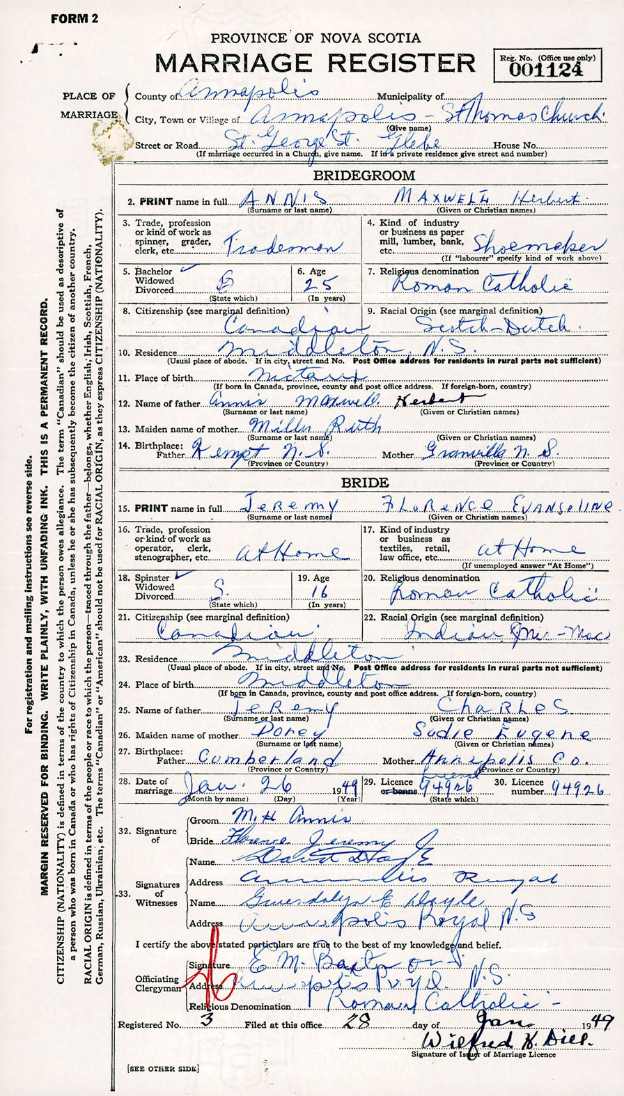 Registration: Year: 1949 number: 001124