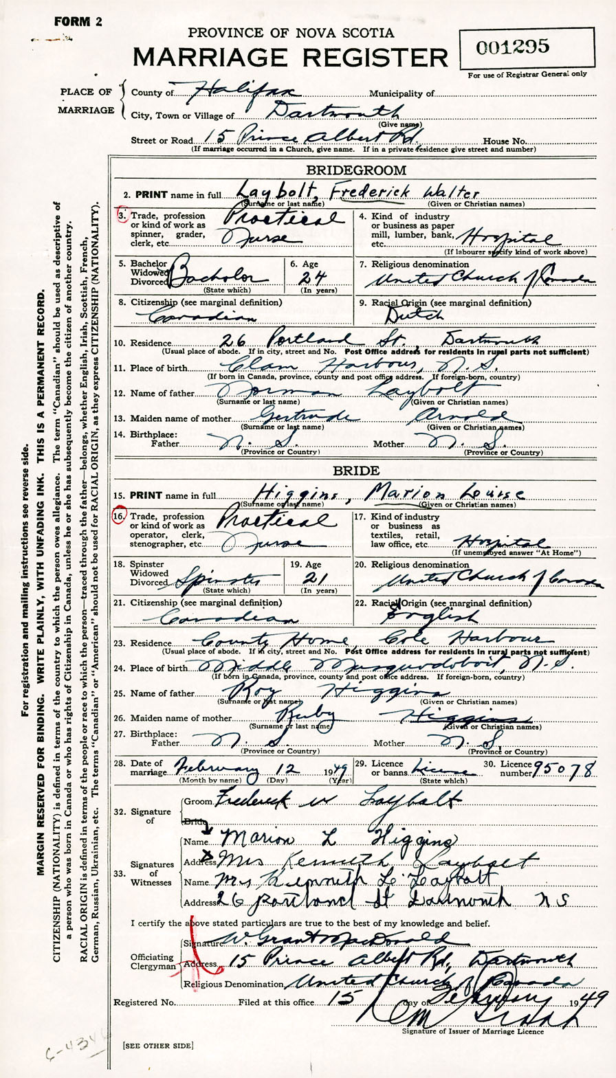 Registration: Year: 1949 number: 001295