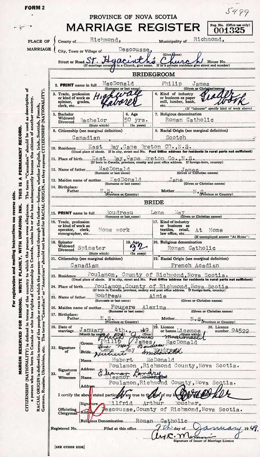 Registration: Year: 1949 number: 001325