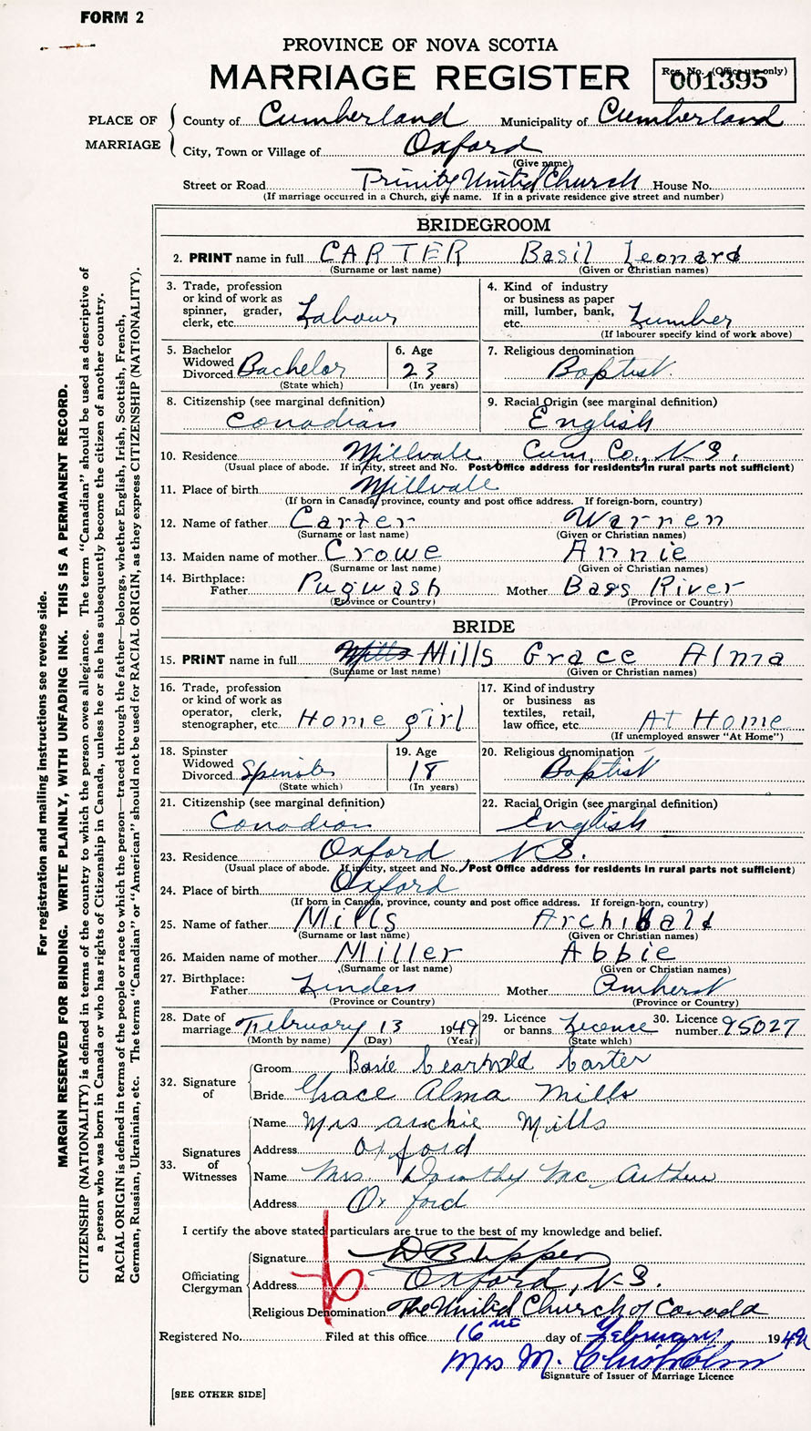 Registration: Year: 1949 number: 001395