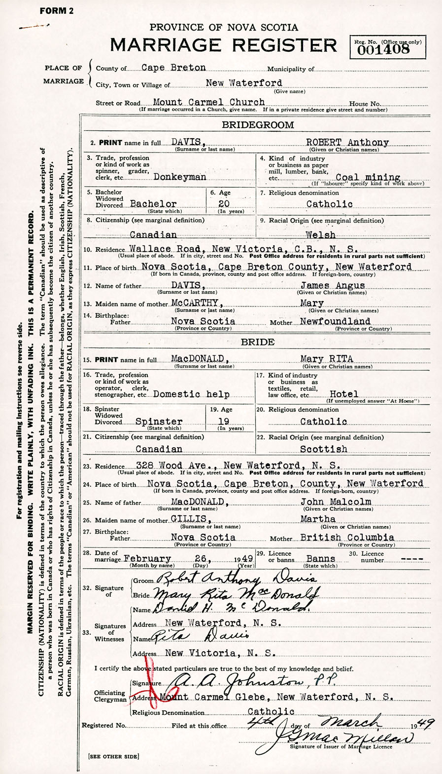 Registration: Year: 1949 number: 001408