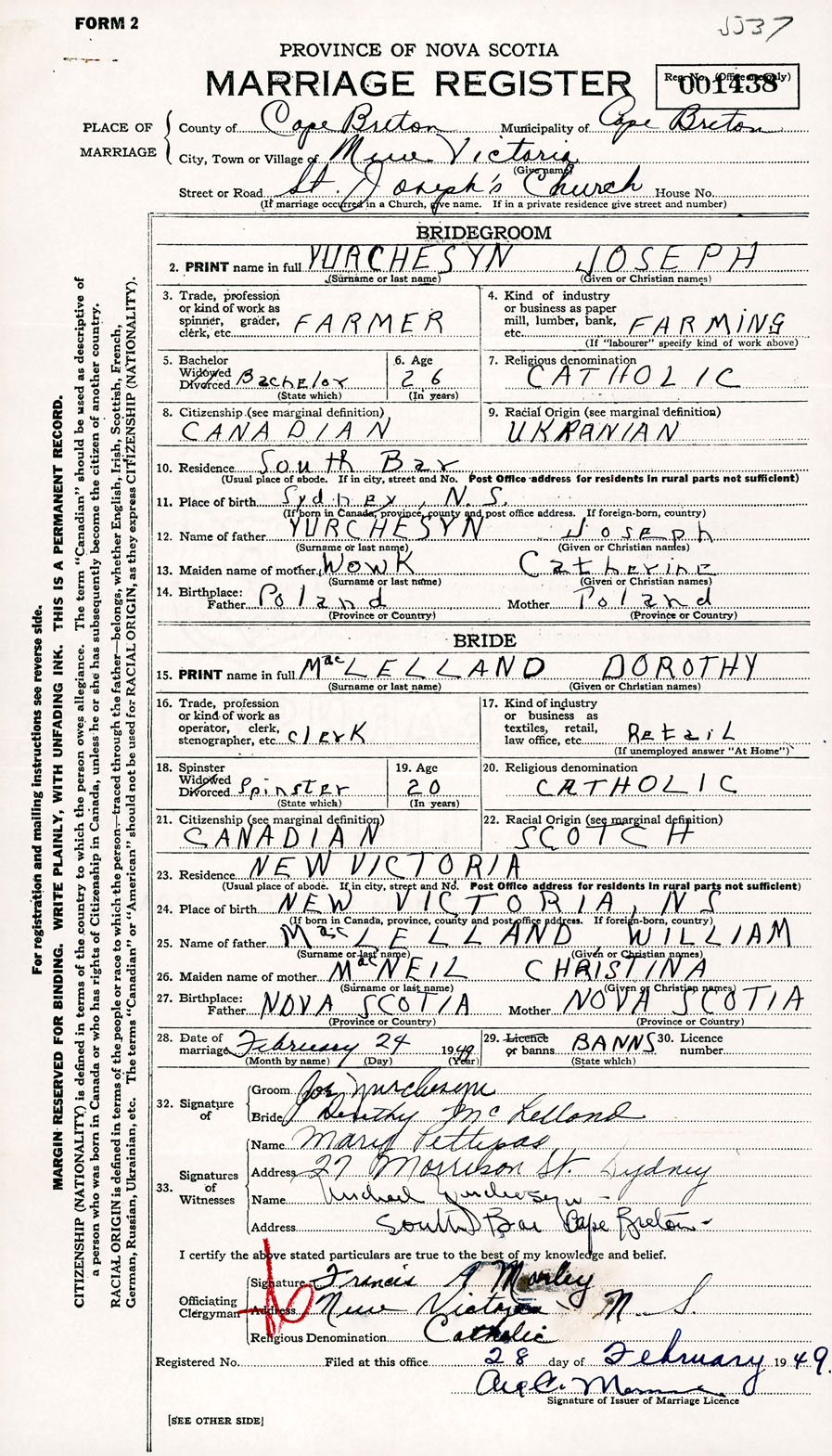 Registration: Year: 1949 number: 001438