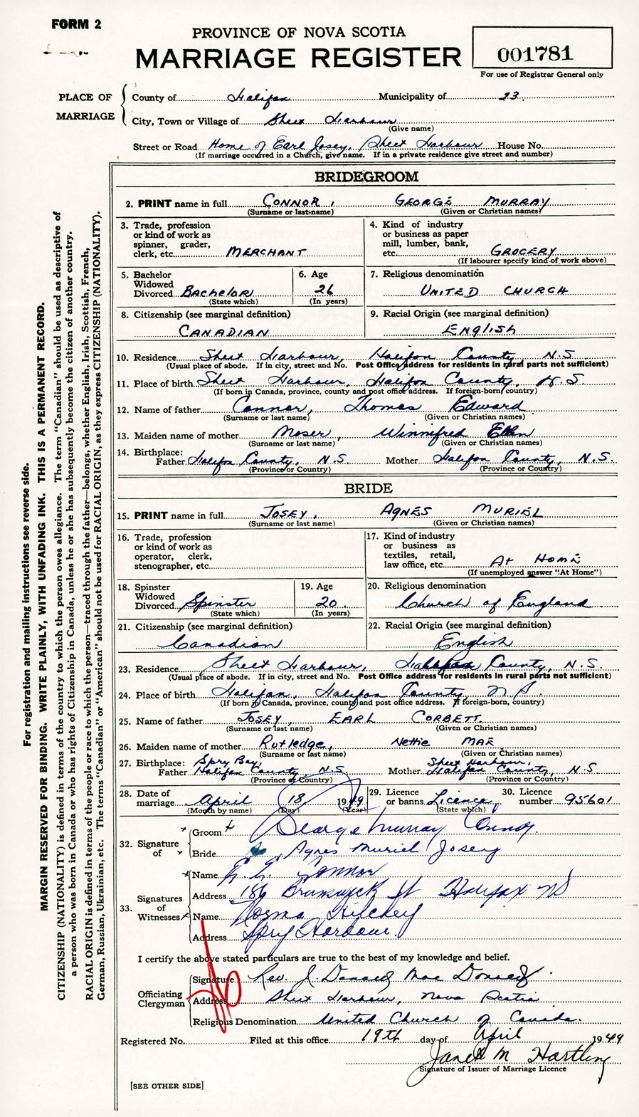Registration: Year: 1949 number: 001781