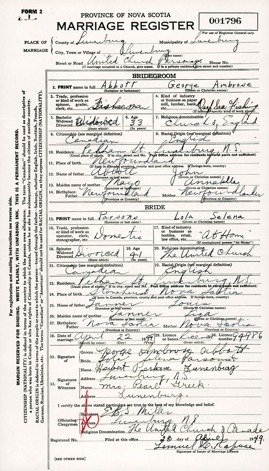 Registration: Year: 1949 number: 001796