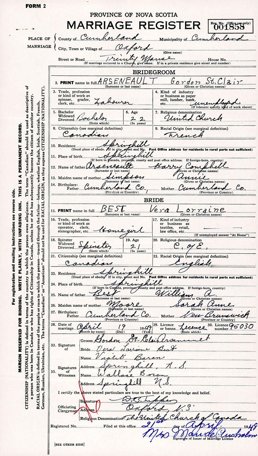 Registration: Year: 1949 number: 001858