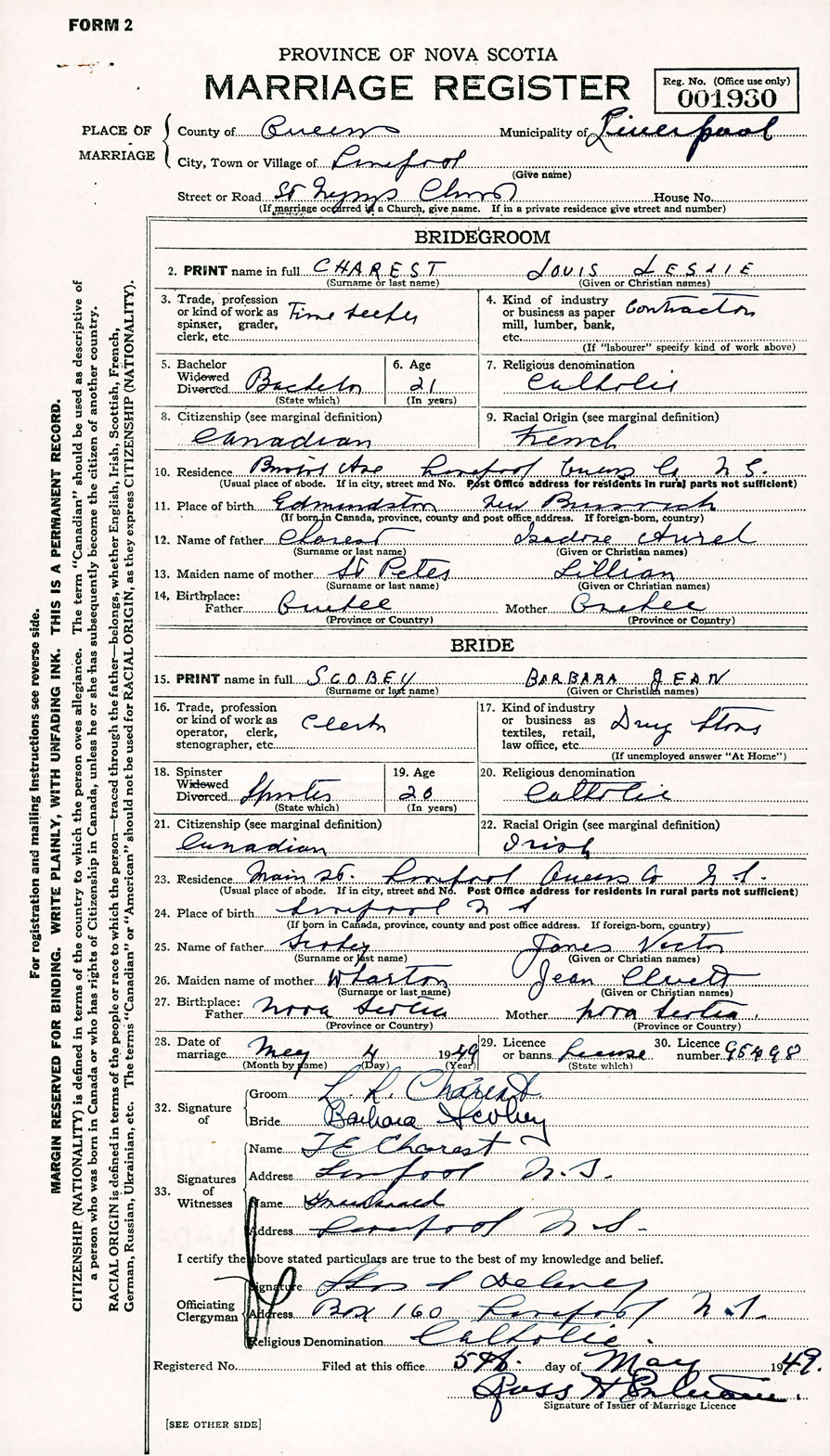 Registration: Year: 1949 number: 001930