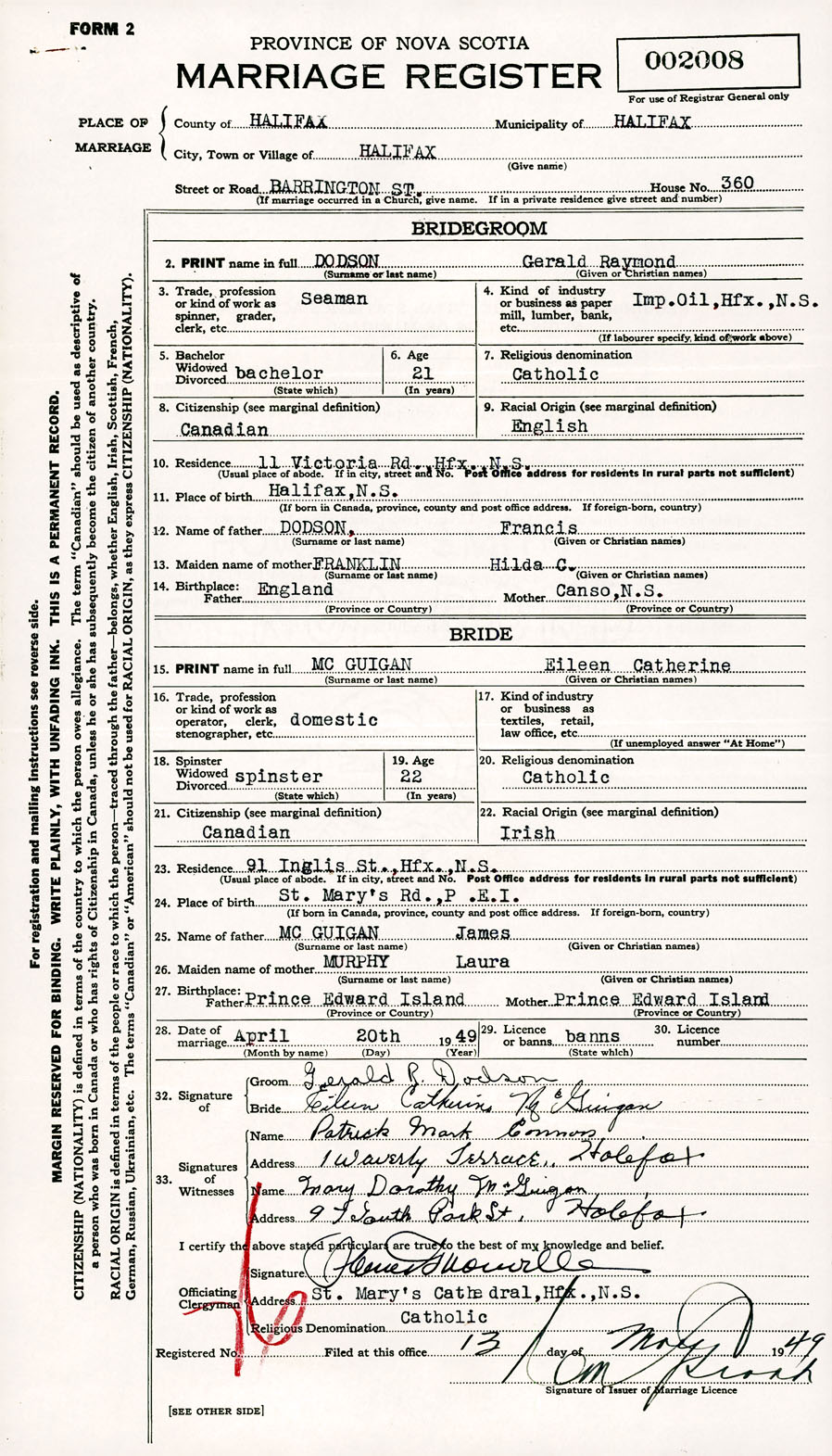 Registration: Year: 1949 number: 002008