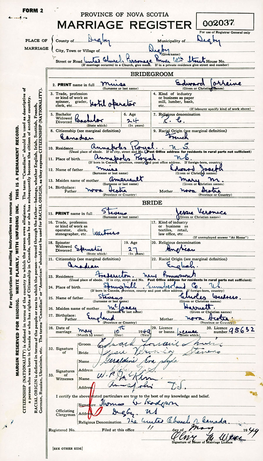 Registration: Year: 1949 number: 002037