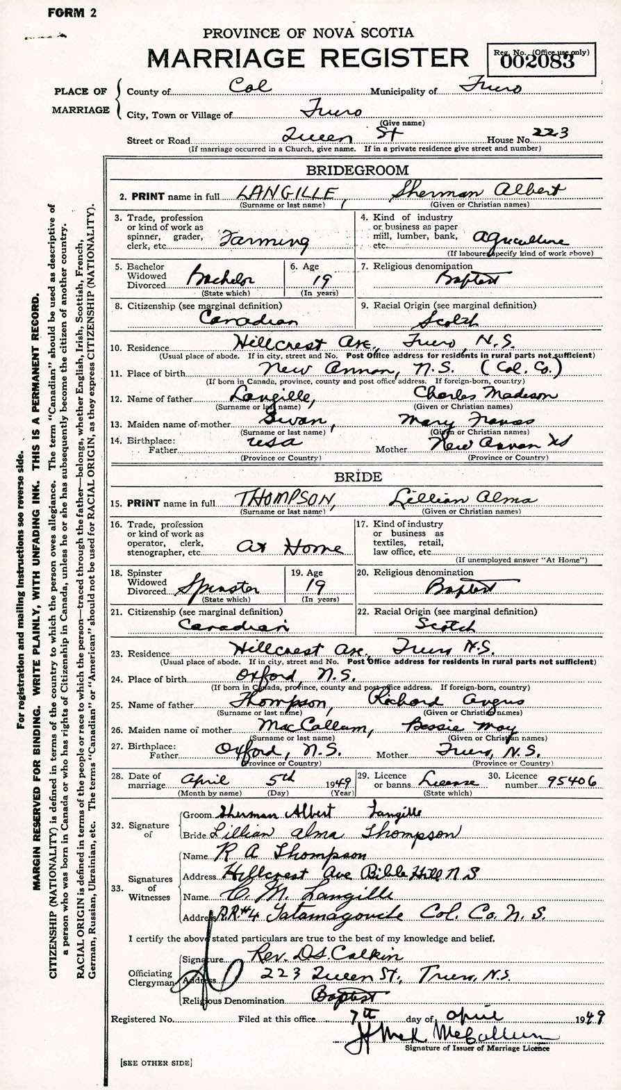 Registration: Year: 1949 number: 002083