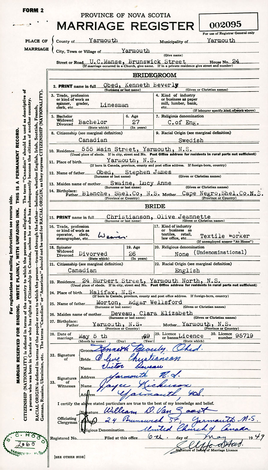 Registration: Year: 1949 number: 002095