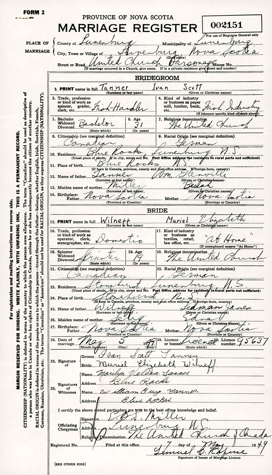 Registration: Year: 1949 number: 002151