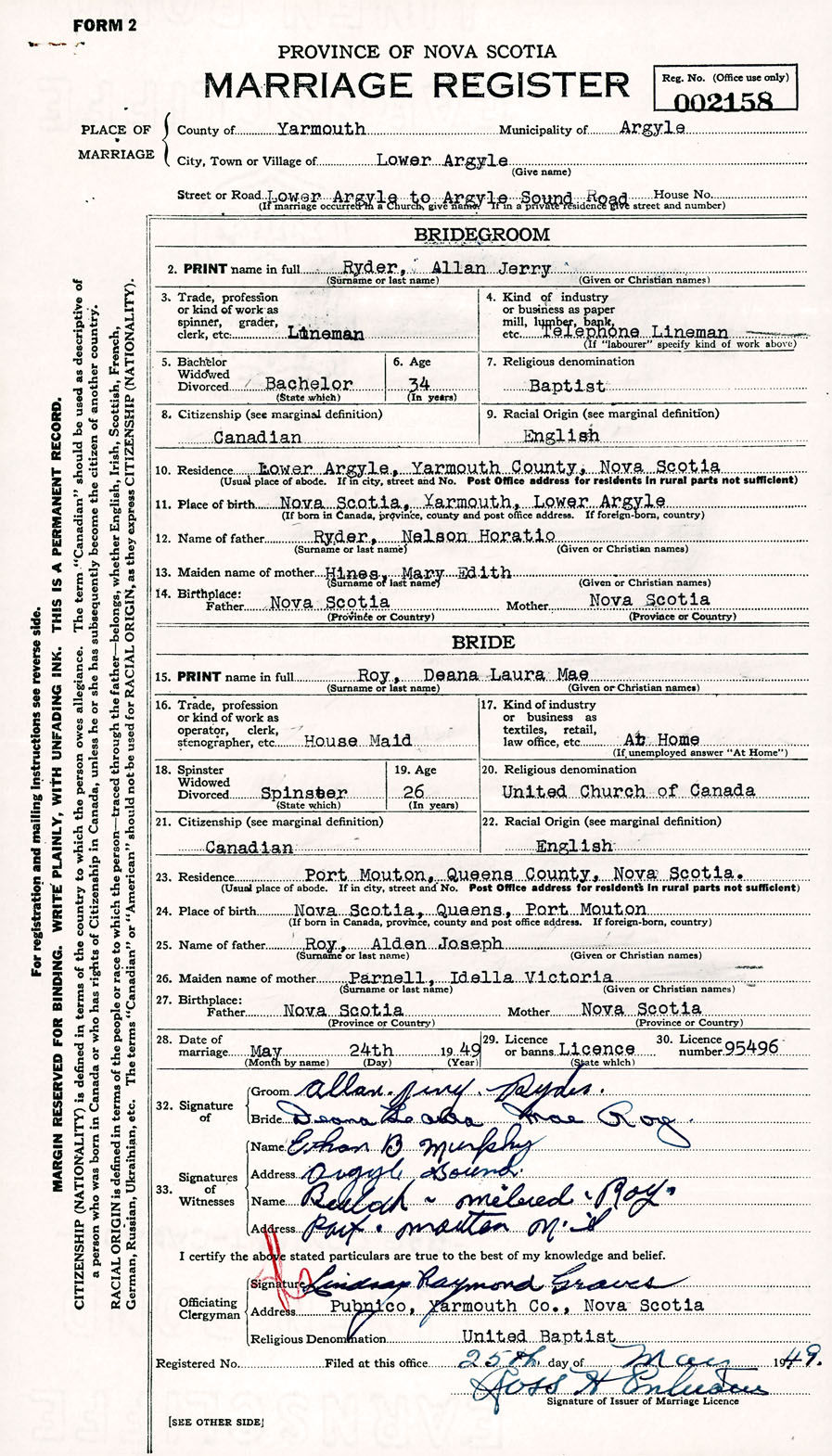 Registration: Year: 1949 number: 002158