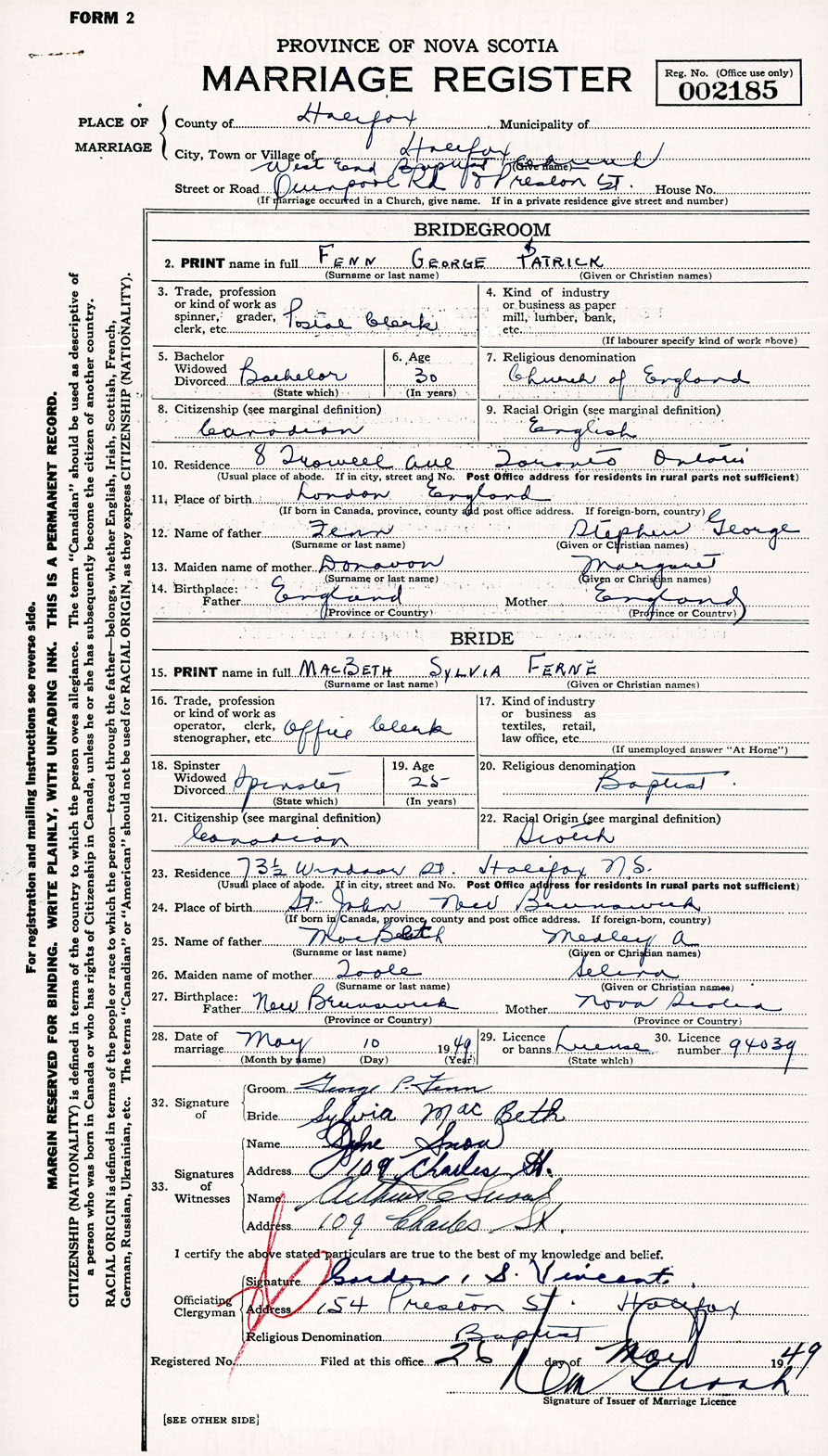 Registration: Year: 1949 number: 002185