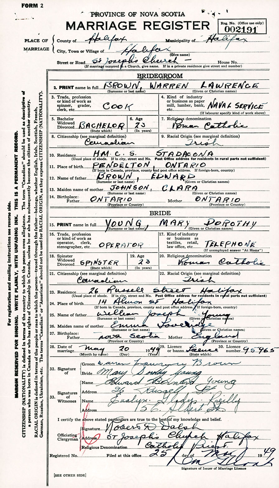 Registration: Year: 1949 number: 002191