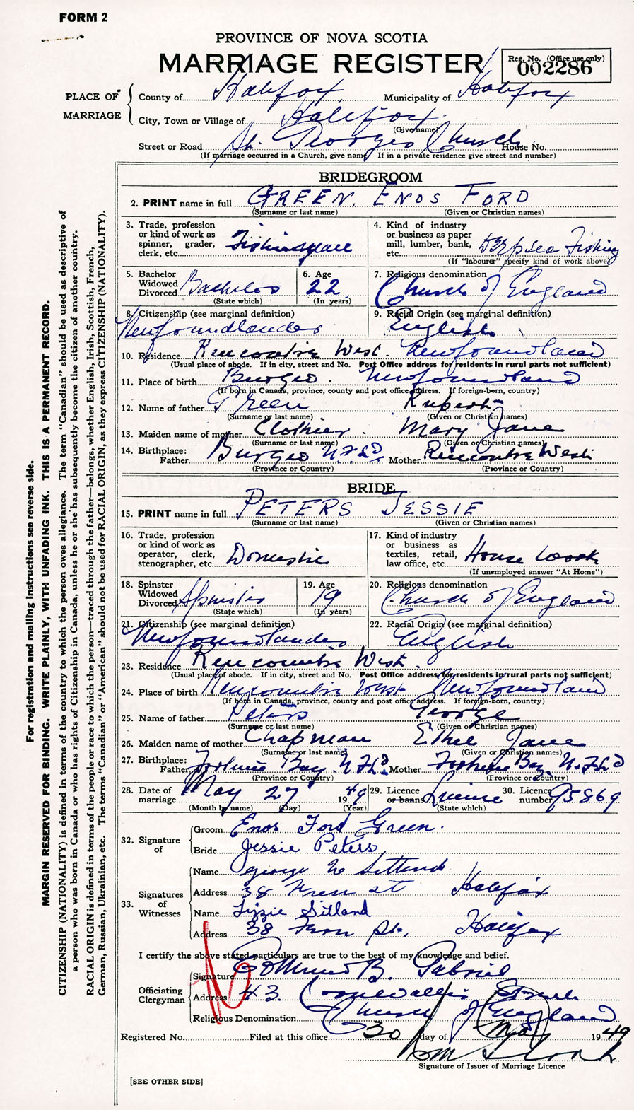 Registration: Year: 1949 number: 002286