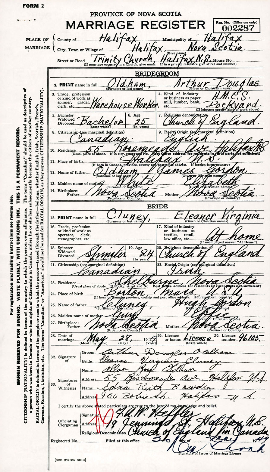 Registration: Year: 1949 number: 002287
