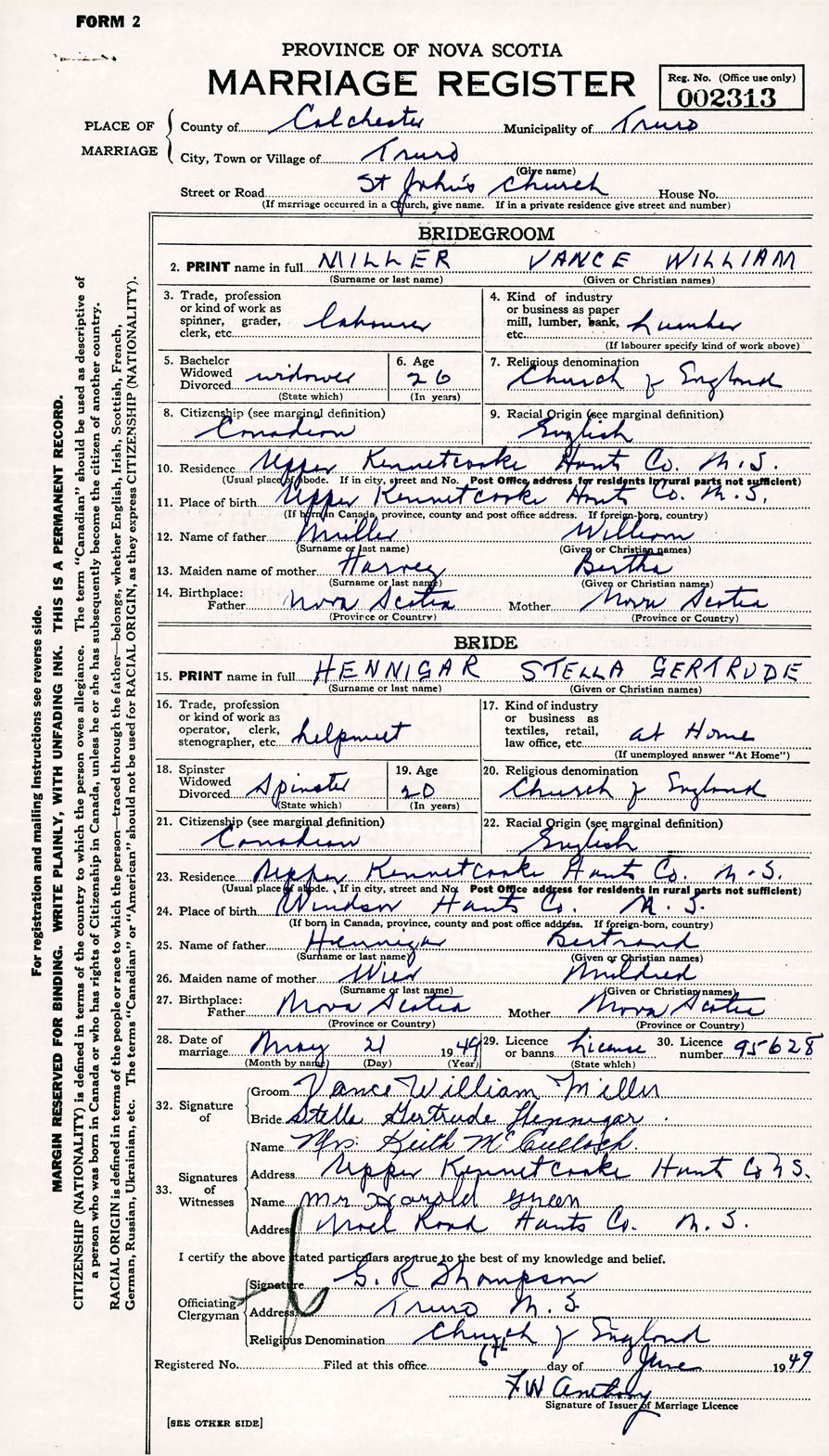 Registration: Year: 1949 number: 002313