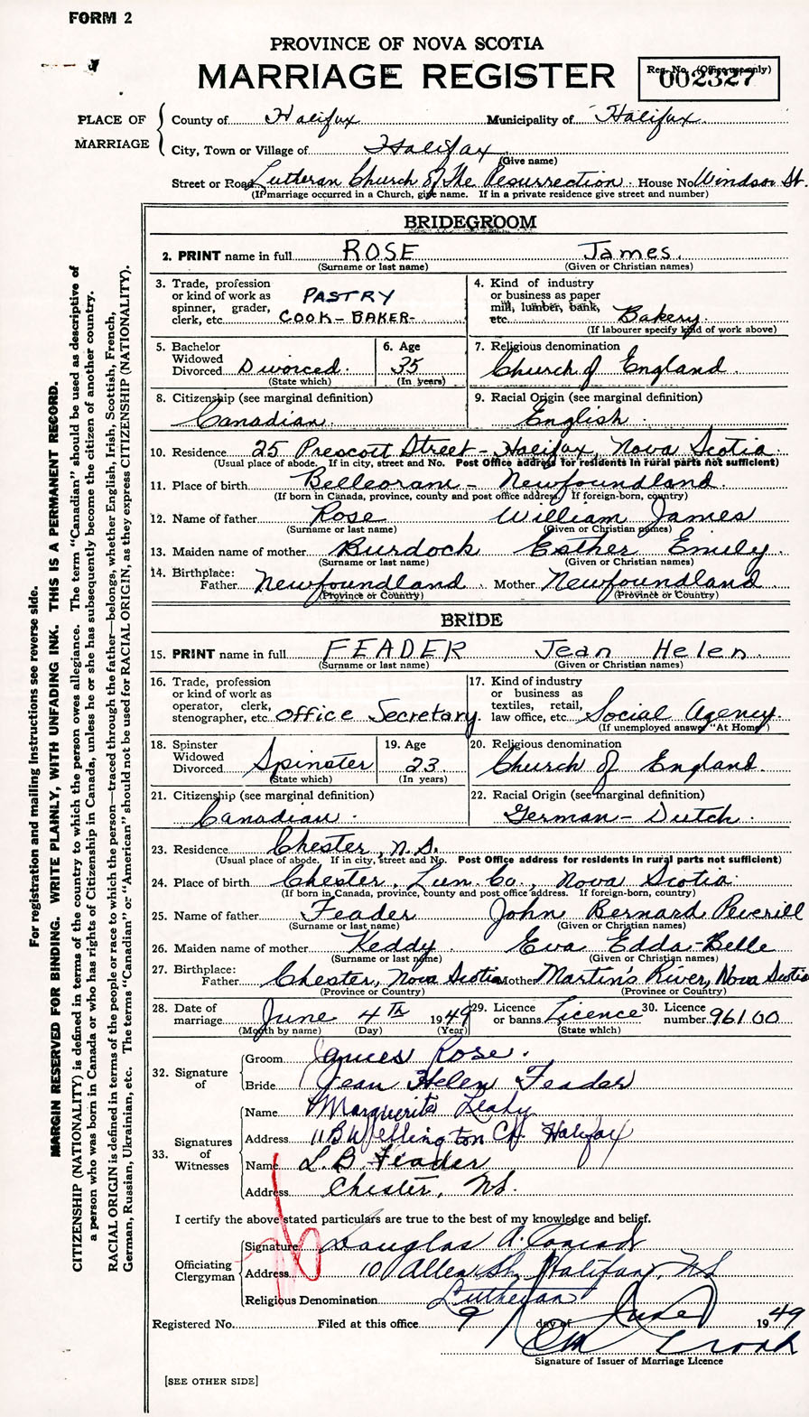 Registration: Year: 1949 number: 002327
