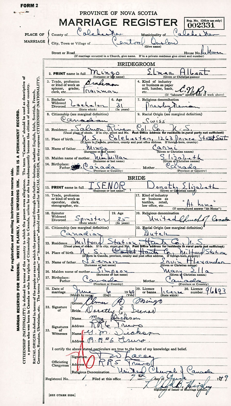 Registration: Year: 1949 number: 002331